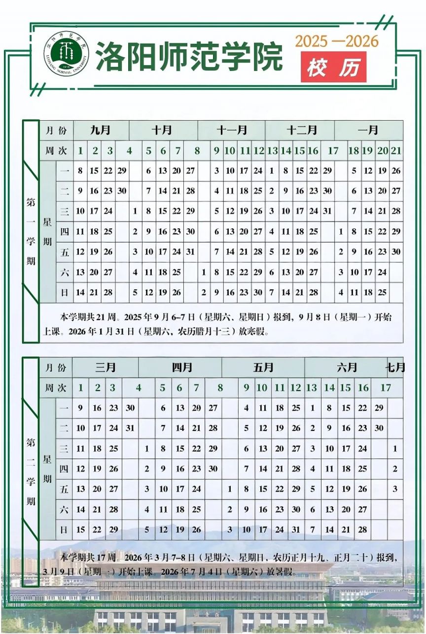 由于我无法直接访问2025年度洛阳师范学院的官方校历,以下是一个基于一般大学校历安排的示例解读。请注意,以下信息可能并不完全准确,具体安排请以洛阳师范学院官方发布的2025年度校历为准。