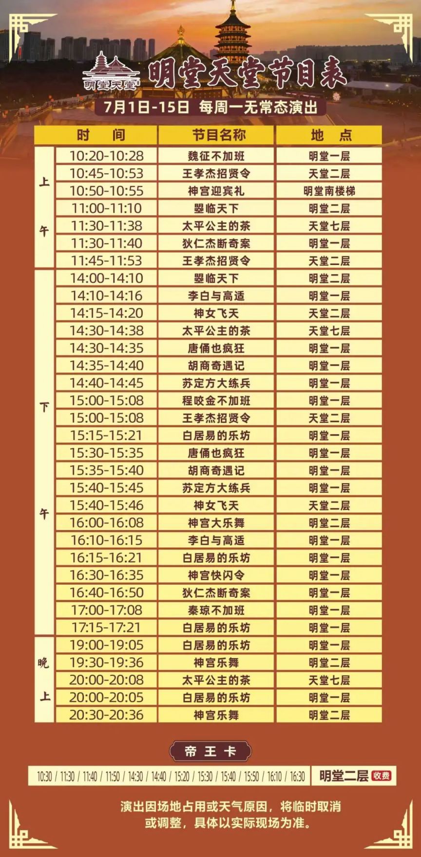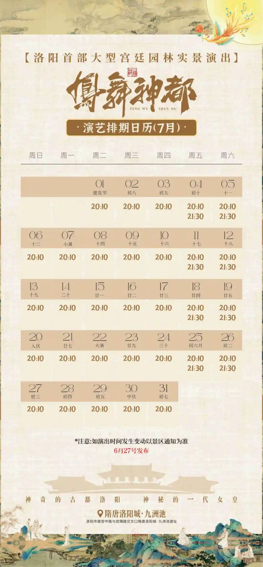 隋唐洛阳城景区节目表(7月1日至7月15日)