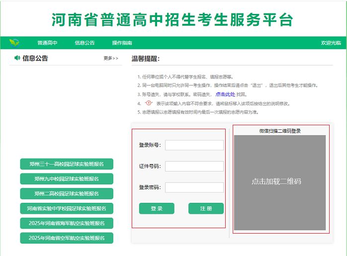 ① 登录账号:即考生的报名序号 。(中招报名后为中招考号)